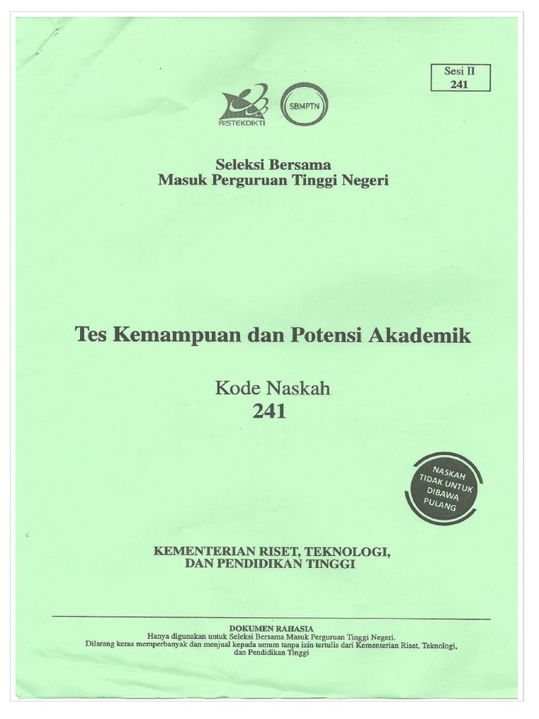 Soal soal tkpa sbmptn terdiri dari matematika dasar, bahasa inggris, dan bahasa indonesia.
