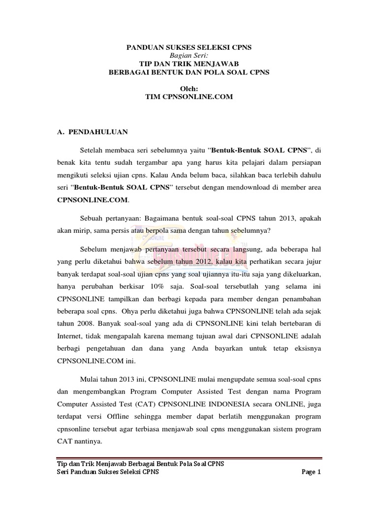 Contoh soal cpns 2018 ini tersususn seluruh soal di awal dan kunci jawabannya di paling bawah. Contoh soal cpns 2018 ini tersususn seluruh soal di awal dan kunci jawabannya di paling bawah. Selain untuk mengabdi kepada negara, berbagai fasilitas masyarakat menganggap seorang pegawai negeri relatif lebih mapan dibanding wiraswasta. Latihan soal tes cpns adalah penting demi. Contoh soal cpns 2018 pdf wawasan kebangsaan seperti yang disampaikan sebelumnya bahwa salah satu kelulusan yang harus dicapai adalah tes wawasan kebangsaan yang soal ujiannya. Jika kasih ibu sepanjang galah, maka tentu saja kau tidak akan sukses seperti sekarang ini. Sedangkan untuk contoh soal cpns nya sendiri, sebenarnya bisa anda cara dan dapatkan diinternet. Apabila peserta dapat menjawab semua soal dengan benar maka dia akan mendapatkan nilai 500. Itulah beberapa contoh soal cpns cat 2018 dan kunci jawaban. Menjadi seorang pegawai negeri sipil masih merupakan pekerjaan idaman bagi setiap pelamar pekerjaan yang ada di indonesia. Soal tiu hots cpns 2019 lengkap kunci jawaban full pembahasan.