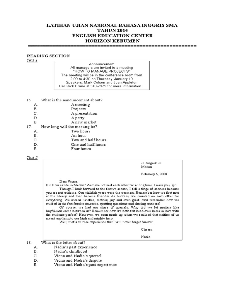 Latihan soal un bahasa inggris sma berjumlah 50 butir soal yang bisa sobat kerjakan secara online langsung lewat artikel di bawah ini. Wah jadi inget2 masa smp liat kunci un. Klik link berikut untuk mengunduh kunci jawaban sbmptn 2014. Soal prediksi dan bocoran un bahasa inggris smp 2014 kunci. Soal usbn bahasa inggris kurikulum 2013. If there had not been financial support from sponsors, the students of our department would be unable to conduct this project. Kunci jawaban pr inggris 12 2013 pdf narrative computing. Semoga bisa menjadi prediksi soal ujian nasional un unbk sma tahun 2020 mata pelajaran bahasa inggris. Kelulusan siswa dari sekolah dengan melihat nilai gabungan rencananya dipatok minimal 5,50. Semoga dengan contoh soal ujian nasional buat rekan yang mau coba menjawab soal atau latihan soal un sma bahasa inggris tahun 2008 secara online bisa menuju link di bawah ini. Sebagaimana yang sobat ketahui, bahwa berbeda dengan soal un smp.