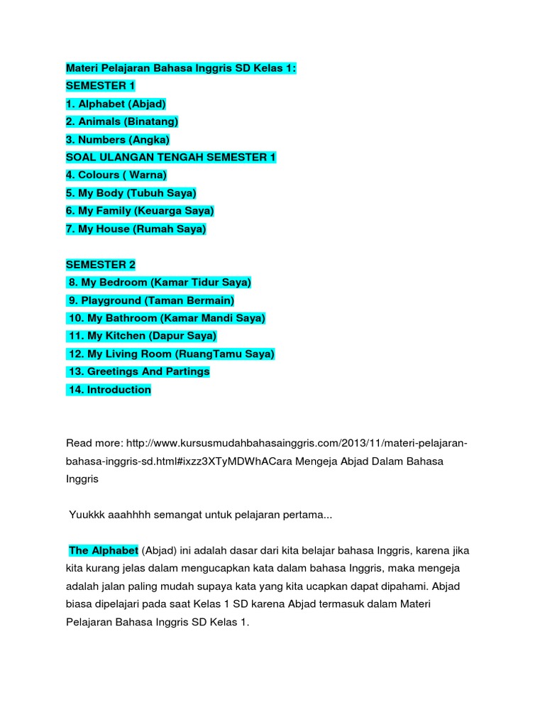 16+ Soal Ulangan Bahasa Inggris Kelas 1 Dan Kunci Jawaban
