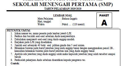 Today, my mother asks me to accompany her to the supermarket. Soal ini bisa digunakan sebagai bahan latihan dalam menghadapi ujian akhir semester 1 mata pelajaran bahasa inggris untuk kelas. Penyebab • tini tidak mendapatkan belanjaan tomat dari 3 konflik langgaanannya • tini 5. Soal ucun smp/mts tahun 2018 bahasa inggris paket a pdf. Contoh soal try out / ucun un smp bahasa inggris 2017/2018 ini merupakan soal yang bisa anda dapatkan secara gratis untuk mempersiapkan siswa dan siswi anda dalam menghadapi ujian nasional termasuk unbk tahun ini. Kegiatan usbn (ujian sekolah berstandar nasional) tingkat smp atau mts tiap daerah ternyata jadwal usbn hari ketiga jam pertama adalah mata pelajaran ips (ilmu pengetahuan sosial), dan jam kedua adalah mata pelajaran bahasa inggris. Kunci jawaban no aspek kunci jawaban skor 1—3 a. 8 017 просмотров • 29 нояб. Contoh soal unbk 2019 2020 smp mts dan kunci jawabannya. Kak tolong kasih pembahasannya dong, yang prediksi 2. Soal usbn bahasa inggris kurikulum 2013.