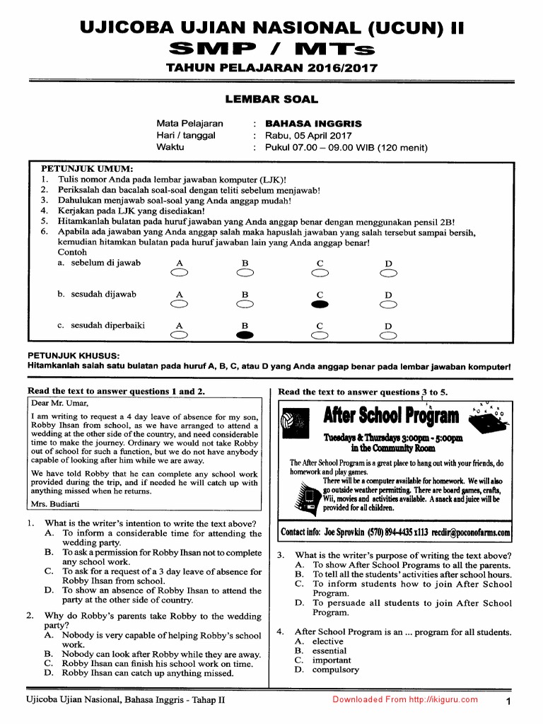 Soal ucun bhs indonesia tahap 2 lengkap dengan kunci jawabannya. A jawaban diketahui dari kalimat so i want to hear all about brazil. Download soal lengkap ucun smp dki tahun 2017. Kunci jawaban pr inggris 12 2013 pdf narrative computing. Pada artikel ini akan membahas sejumlah kunci jawaban pada soal latihan pts/uts bagi kelas 9 smp semester ganjil tahun 2020. Untuk kali ini pembahasan soal latihan dan kunci jawaban untuk mata pelajaran bahasa indonesia dan bahasa inggris yang diambil dari blog.ruangguru.com. .30 d 40 a 50 b ujicoba ujian nasional (ucun) tahap ii sekolah menengah pertama (smp) tahun ajaran 2014/2015 kunci. Akan saya update kunci jawaban soal ucun tahap 1 dan juga tahap 2. Kata tanya bhs inggris untuk pemula. Ucun (to un) dki jakarta tahap 1 tahun 2018; Kunci jawaban lks ekcellent sosiologi kelas xi gyl43e6gv70r.