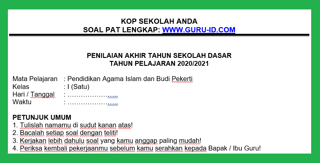 Penilaian akhir tahun pada satuan pendidikan dilaksanakan buat proses pengumpulan serta. Berikut ini soal latihan ulangan kenaikan kelas (ukk) atau penilaian (ulangan) akhir semester genap atau penilaian akhir tahun (pat) mata pelajaran sosiologi, biologi, geografi, kimia, pai, ppkn, ekonomi, fisika, matematika, sejarah, tik, bahasa inggris dan penjas (pjok) jenjang sma kelas. Baiklah tanpa basa basi lagi berikut contoh soal ujian pat/ukk bahasa inggris kelas x ! Admin harap soal pat ski ma kelas 11 ini bisa bermanfaat untuk sobat yang ingin menghadapi ujian mendatang. Soal uts bahasa jawa kelas 123456 sd semester 1. Tulis namamu di sudut kanan atas 2. Soal ukk bahasa inggris sma kelas 11 dan kunci jawaban terbaru. Soal telah disusun dalam bentuk pilihan ganda dan essay dan dilengkapi dengan kunci jawaban untuk memudahkan dalam proses pemeriksaan sekaligus cross. Soal dan jawaban pat prakarya kelas 7 semester 2 kurikulum 2013 tahun 2020. Soal ujian bahasa inggris ini bisa diunduh secara gratis. Soal pat kelas 2 sd tema 5 pengalamanku dan kunci jawaban.