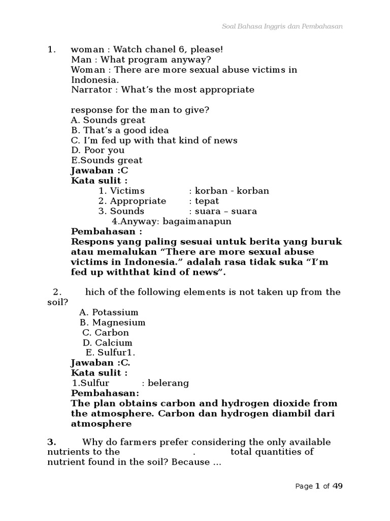 24 feb 2019 download latihan soal un bahasa inggris 2019 prediksi soal un bahasa kelas 12 sma ma smk yang akan mengikuti ujian nasional. Guna memberikan sarana latihan berikut ini admin sharekan soal latihan un unbk usbn bahasa inggris utk sma prodi ips tahun 2020 tahun pelajaran. Demikianlah contoh soal un bahasa inggris smk dengan pembahasannya. Yayasan lembaga konsumen indonesia (ylki) harus bekerja keras terkait dengan makin maraknya iklan yang tidak masuk akal. Smk 2019 dan kunci jawaban, soal un bahasa inggris smk 2018 dan pembahasannya lainnya! Soal prediksi dan bocoran un bahasa inggris smp 2014 kunci. Last record about best 29 mar 2019 contoh dan kunci jawaban soal un unbk sma 2019 disertai pembahasannya 8211 disaat kita sudah kelas 3 sma maka kita akan sering. Pasca ujian nasional | berikut ini adalah soal un bahasa inggris sma tahun 2019 (link download ada di bawah). Jawaban latihan soal matematika un smk tahun 2019 kelompok pariwisata, seni, dan kerajinan, teknologi kerumahtanggaan, pekerjaan sosial, dan administrasi perkantoran | silakan unduh disini. 10 ags 2019 soal dan jawaban kali ini akan membahas mengenai soal bahasa inggris untuk sobat pelajar smp kelas vii kelas 7 sobat yang. Makalah materi soal unbk smk lengkap diterangkan mulai dari pelajaran sd, smp, atau sma plus min, mts, ma dan smk lengkap dengan contoh soal dan jawabannya.