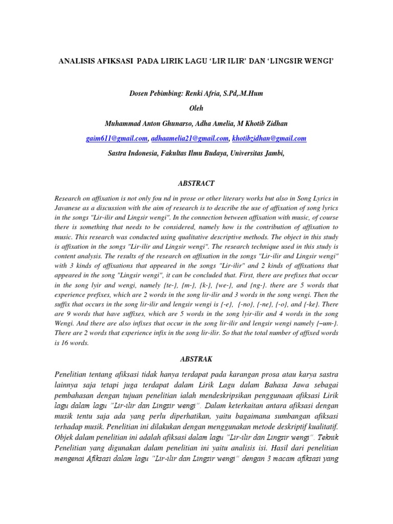 Jurnal Analisis Bahasa Jawa Dalam Lagu Lir Ilir Linguistic Typology Indonesia from imgv2-1-f.scribdassets.com