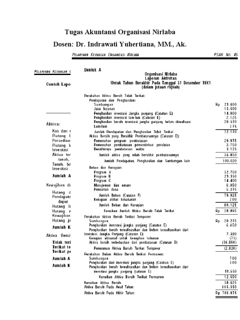 Jenis laporan keuangan organisasi atau perusahaan nirlaba. Psak 45 diterbitkan dan disahkan oleh ikatan akuntan indonesia (iai) pada 23 desember 1997 serta telah berlaku efektif sejak 1 januari 2000. Prosedur pelaporan akuntansi • kebijakan prosedur. 20190110 soal essay uraian akuntansi pemerintahan smk 1. Contoh laporan keuangan organisasi nirlaba yayasan seputar laporan cute766. Contoh soal akuntansi sektor publik organisasi nirlaba beserta jawabannya. Jurnal tentang penelitian akuntansi pemeintah dan organisasi nirlaba. Contoh soal jurnal akuntansi sektor publik organisasi nirlaba beserta jawabannya.jurnal akuntansi dan keuangan sektor publik vol 05 no 02 berikut ini adalah file tentang jurnal akuntansi dan keuangan sektor publik vol 05 no 02 yang bisa bapakibu unduh secara gratis dengan menekan tombol download pada tautan link di bawah ini.