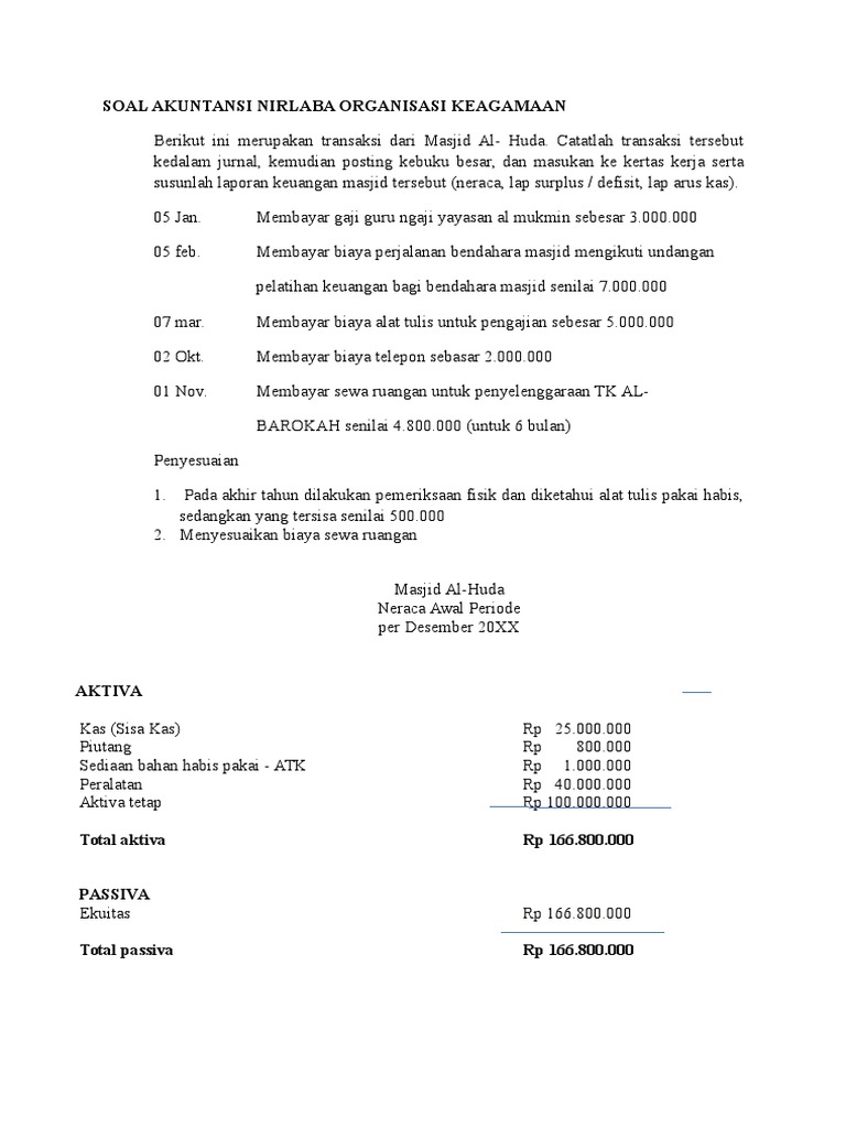 Contoh soal akuntansi sektor publik organisasi nirlaba beserta jawabannya.