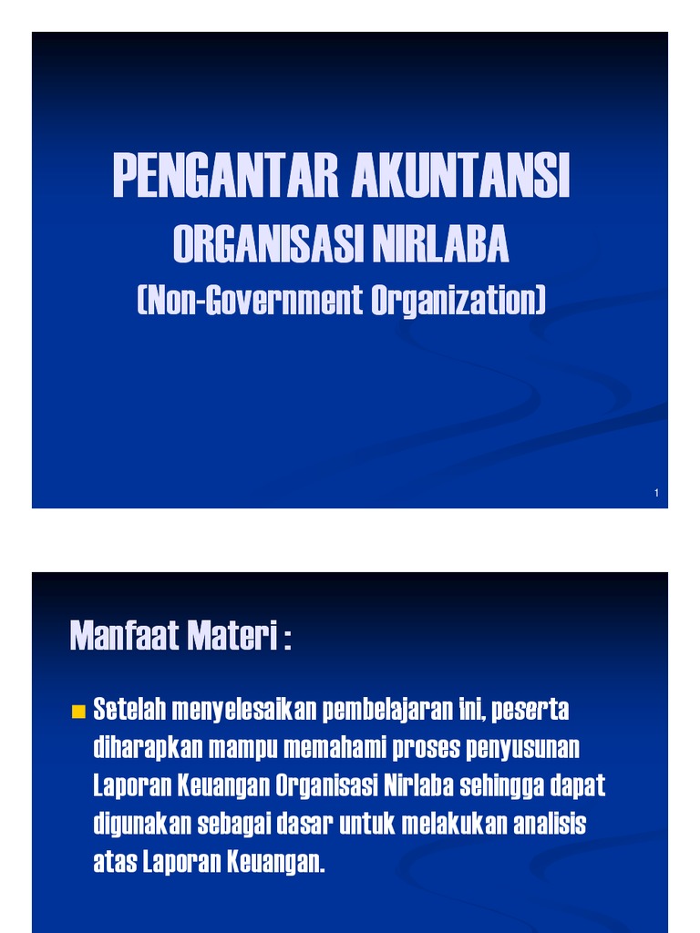 Maka untuk itu, perusahaan nirlaba juga membutuhkan laporan keungan yang sesuai dengan standar akuntansi keuangan bisnis nirlaba. Keuangan entitas nirlaba berstatus badan layanan umum.jurnal paradigma. Pengukuran kinerja dengan indikator kualitatif juga membuat penelitian empiris tentang kinerja organisasi nirlaba sulit dilakukan. Organisasi nirlaba bisa terdiri dari yayasan, organisasi keagamaan, organisasi masjid, Di mana organisasi laba ini mendapatkan perolehan sebuah dana dari sumbangan para donatur dan organisasi ini juga tidak mengharapkan sebuah keuntungan. Persamaan dasar akuntansi organisasi nirlaba berbeda dengan persamaan dasar akuntansi pada perusahaan lain. Contoh soal akuntansi organisasi nirlaba dalam psak pengakuan transaksi dalam yayasan nirlaba menggunakan basis akrual atau basis kas. Tidak berlandaskan profit atau keuntungan, bisnis nirlaba memerlukan laporan keuangan dalam usahanya.