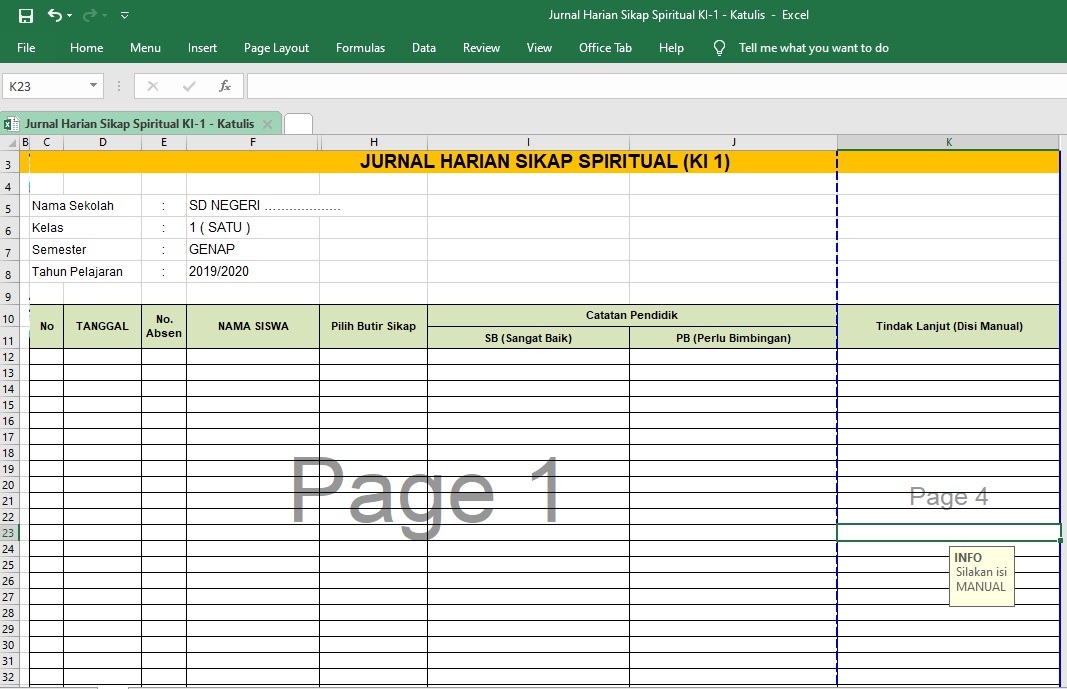Apabila catatan perkembangan sikap spiritual dan sikap sosial dijadikan satu, perlu ditambahkan satu kolom keterangan di bagian paling kanan untuk menuliskan apakah perilaku tersebut sikap.
