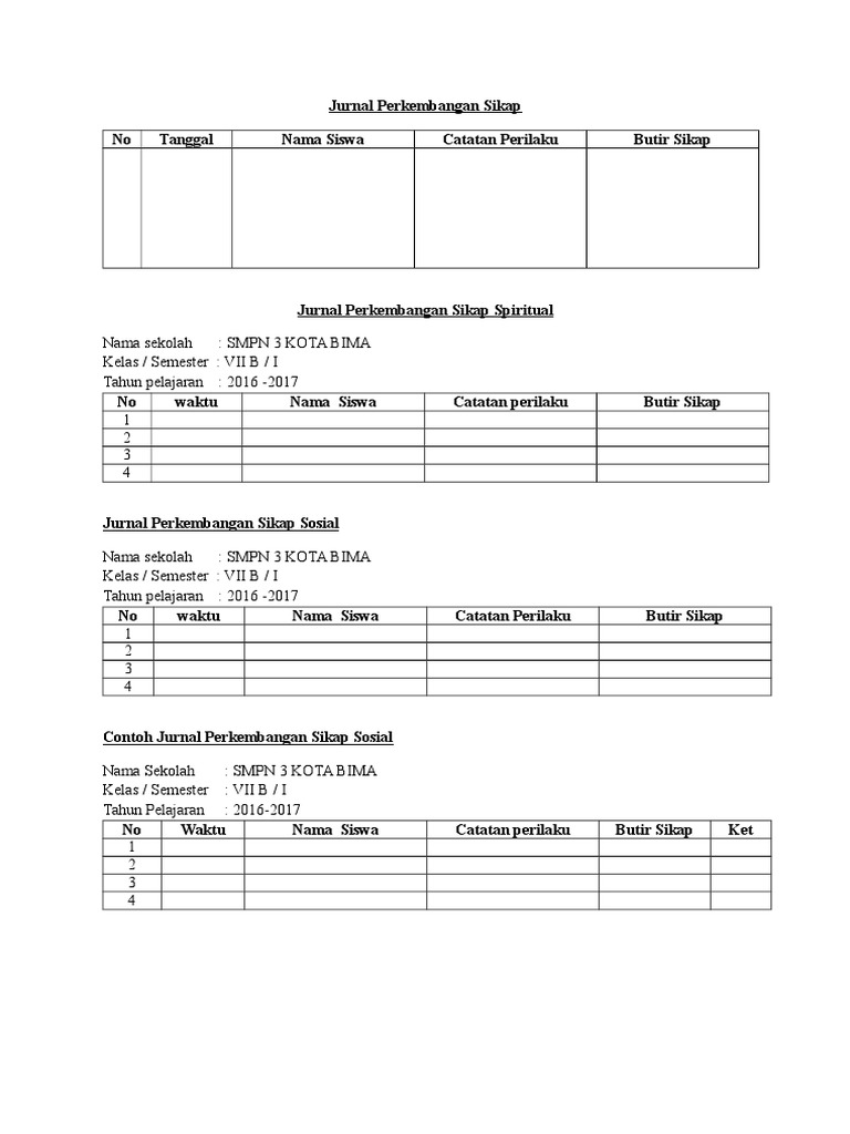 Upaya penanaman nilai nilai pendidikan karakter pada siswa. Contoh catatan komentar guru di raport ktsp dan deskripsi di. Dalam melaksanakan penilaian sikap, perlu dirancang format lembar observasi maupun jurnal sebagai dokumen pendukung dalam menetapkan nilai sikap tiap siswa, dengan tabel 3.1b. Di era informasi yang berkembang cepat sekarang ini, sumber rujukan atau kutipan dapat berasal dari mana saja, baik cetak atau digital. Contoh jurnal ada sangat banyak dan kami akan menyampaikan secara lengkap.