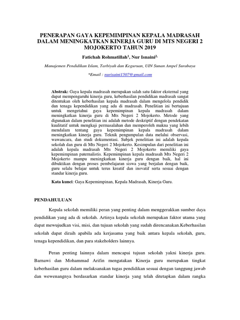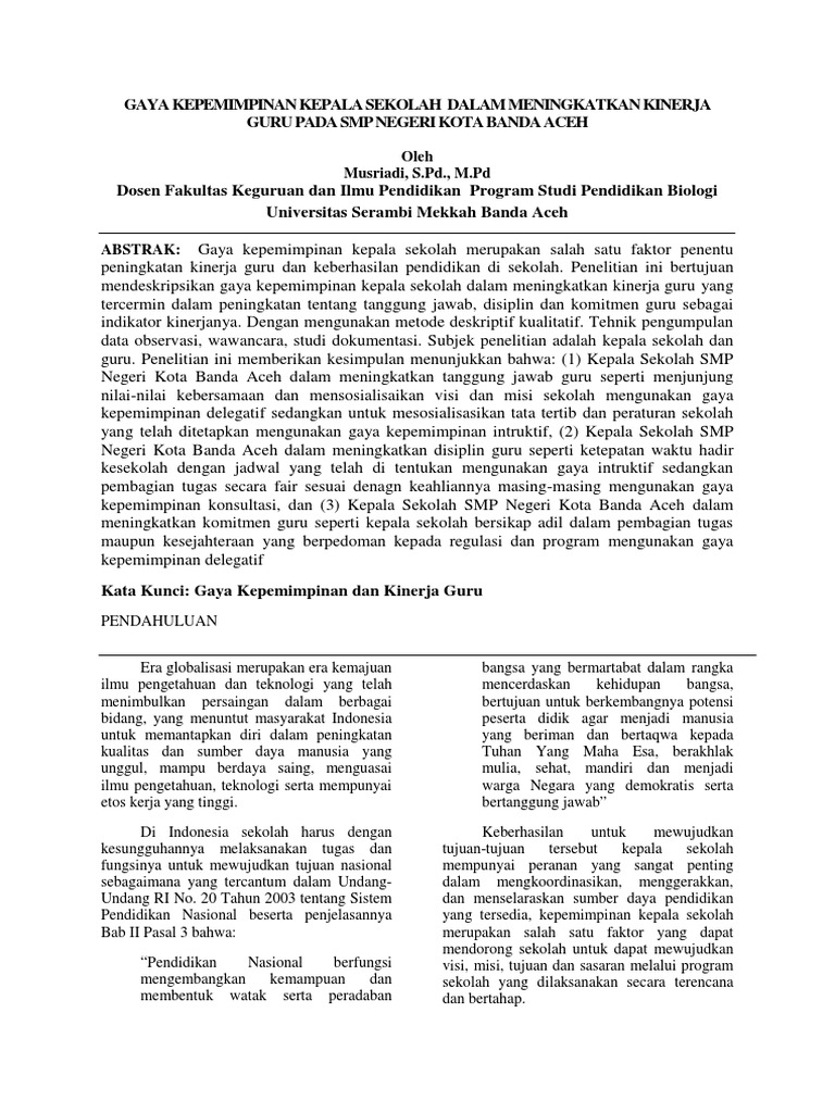 View Contoh Jurnal Gaya Kepemimpinan Terhadap Kinerja Guru Sekolah Dasar Pics