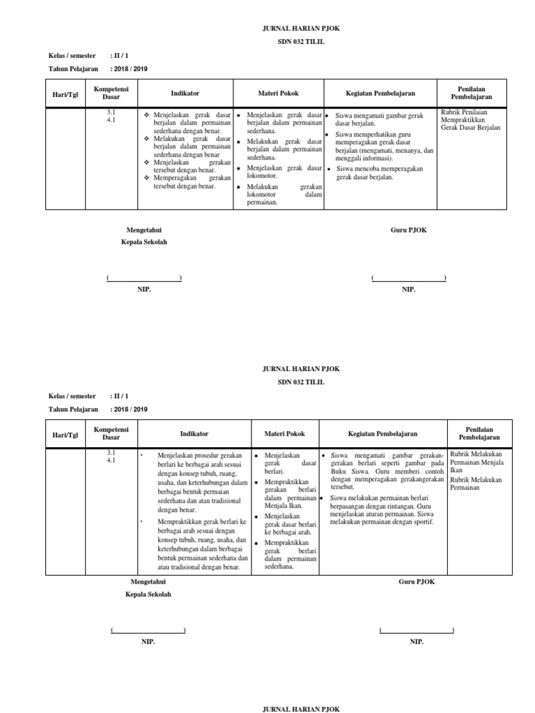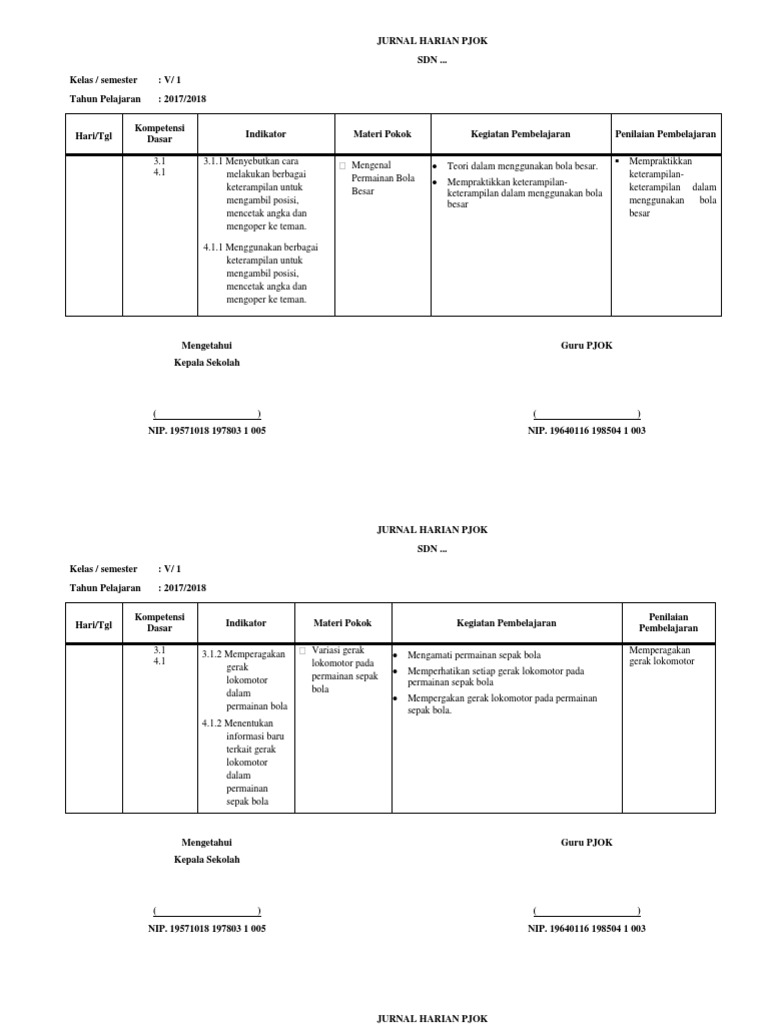 41+ Contoh Jurnal Harian Guru Penjas Sd Pictures. Jurnal harian daring kelas 6 semester 1. Jurnal harian yang admin bagikan untuk guru mapel pjok penjas penjasorkes dan penjaskes ini merupakan file kurikulum 2013 yang dibuat berdasarkan permendikbud untuk revisi tahun 2017. 4.9 kosakata dan ungkapan perkenalan diri. Untuk kali ini kami akan bagikan contoh jurnal harian guru dan siswa format excel untuk kebutuhan administrasi guru ataupun akreditasi sekolah standar isi, proses dan penilaian baik jenjang sd/mi, smp/mts, sma/smk dan ma. Download jurnal harian pjok kelas 4 sd/mi untuk semester 1 dan 2.