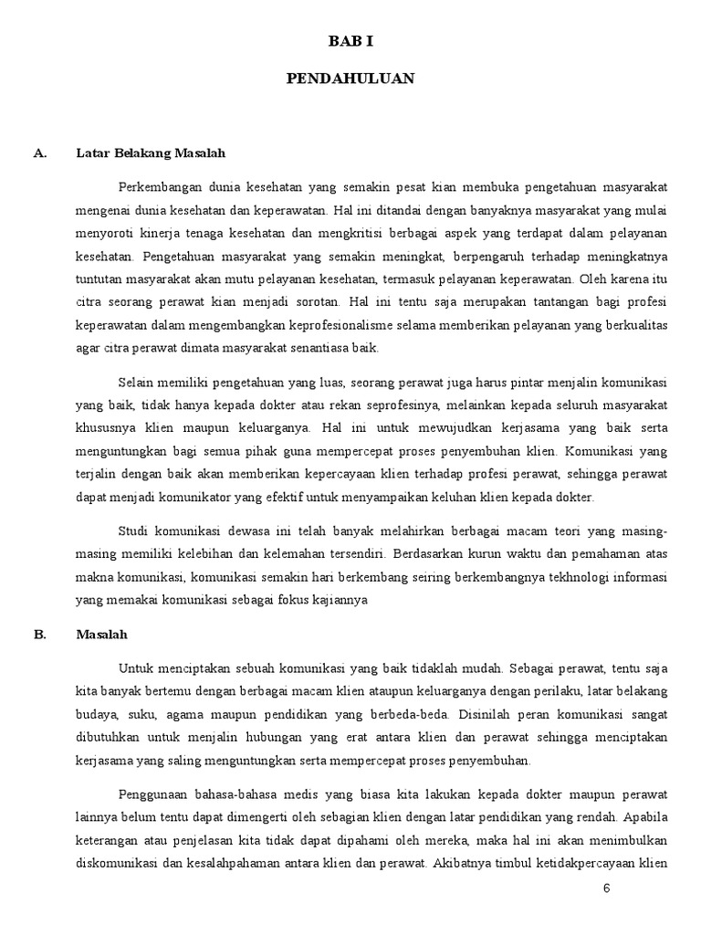 Selain itu menurut stuart g.w (1995: Puas hanya 4,3%, sedangkan yang mengatakan komunikasi perawat kurang baik dengan tingkat kepuasan kurang lebih besar yakni 10,9% dibandingkan yang mengatakan puas hanya 6,5%. Komunikasi terapeutik yang merupakan hubungan relasi interpersonal antara dokter atau perawat dengan klien untuk memperoleh pengalaman belajar bersama dalam rangka memperbaiki pengalaman emosi klien (suryani, 2005: Ditemukan dalam kelompok studi dan kelompok diskusi. Kalau tempatnya bising, ruangan sempti, tidak leluasa untuk berkomunikasi dapat mengakibatkan ketegangan dan tidak nyaman. Pengertian hubungan interpersonal interpersonal secara umum adalah proses komunikasi yang 21 sedangkan hubungan interpersonal adalah hubungan diluar diri atau disebut juga dengan penyesuaian dengan orang lain.22 hubungan interpersonal adalah hubungan yang terdiri atas dua Komunikasi seorang perawat dengan pasien pada umumnya menggunakan komunikasi yang berjenjang yakni komunikasi intrapersonal, interpersonal dan komunal/kelompok. Secara singkat komunikasi intrapersonal adalah komunikasi dengan diri sendiri saat menerima stimuli dari lingkungan.