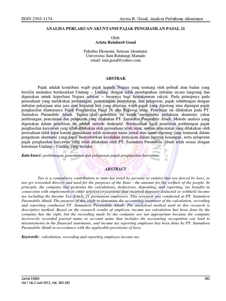 Bagi anda yang berkutat di dunia akademisi atau penelitian pastinya anda sudah tidak asing lagi dengan istilah jurnal atau review jurnal, baik jurnal internasional yang dibuat. Demikianlah resume contoh jurnal yang tersedia dalam database kami. Di artikel ini, kamu akan mengenal berbagai macam contoh jurnal yang bisa kamu gunakan sebagai referensi. Jurnal akuntansi dan perpajakan (journal of accounting and taxes) publishes theoretical and empirical research across all the major fields of accounting and taxes research. Contoh jurnal akuntansi internasional pdf jurnal akuntansi issn: Jurnal akuntansi dan keuangan, vol. 14 no.2, juli 2009 sejarah, perkembangan, dan pengadopsian standar akuntansi internasional di indonesia sejarah dan perkembangan standar akuntansi di indonesia berikut adalah perkembangan standar akuntansi indonesia mulai dari awal sampai dengan saat ini yang menuju konvergensi dengan ifrs (sumber: Tujuan dari jurnal umum akuntansi adalah untuk mengembangkan teori dari akuntansi itu sendiri.