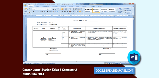 Download buku jurnal pelaksanaan pembelajaran harian untuk kelas 6 sd semester 2 kurikulum 2013. Jurnal harian guru merupakan sebuah catatan penting bagi guru yang mencakup muatan dan mapel kd indikator pencapaian kompetensi. Jurnal harian kegiatan pembelajaran selama siswa belajar di rumah kelas 6. Download jurnal kelas 2 semester 2 k13 revisi 2018. Jurnal yang dibagikan ini meliputi: Disusun menggunakan microsoft office excel, bapak dan ibu guru dengan mudah mengubah sesuai keinginan. Jurnal kelas ii tema 6 merawat hewan dan tumbuhan. Jurnal yang kami bagikan merupakan administrasi yang digunakan oleh guru untuk menandai ketercapaian. Jurnal kelas ii tema 7 kebersamaan. Jurnal kelas 6 semester 1 k13 terdiri dari tema 1, tema 2, tema 3, dan tema 4. Download jurnal k13 kelas 1 sd semester 1 = download. Berikut ini jurnal harian guru kurikulum 2013 sd kelas 1, 2, 3, 4, 5 dan 6 yang merupakan salah satu administrasi guru k13 untuk kegiatan mengajar. Jurnal harian k13 kelas 2 sd semester 1 dan 2 merupakan salah satu bagian penting dan tidak bisa terpisahkan dengan perangkat pembelajaran pada setiap pelaksanaan kegiatan belajar.