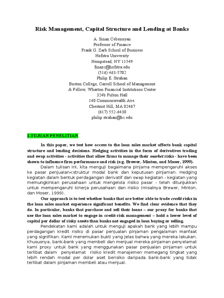 Teman kita, maya telah mengirimkan permintaan akan sebuah artikel jurnal terbaru. Sedangkan kata risiko berarti akibat yang kurang menyenangkan (merugikan dan membahayakan) dari suatu perbuatan atau tindakan. Pengertian dan contoh instrumen derivatif. Studi empiris perusahaan manufaktur yang terdaftar di bei. Menurut bank indonesia, kebijakan dalam manajemen risiko terdapat dalam hal berikut ini: