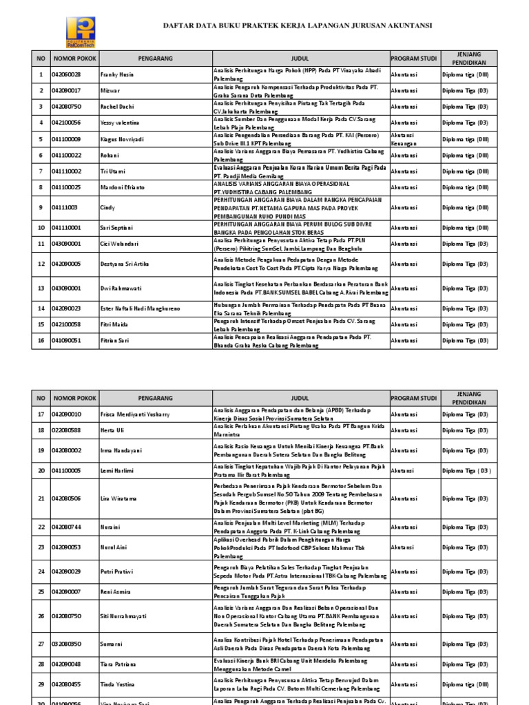 Program pelatihan materi atau keterampilan yang diperoleh selama prakerin ke sekolah dan presentasi. 2 contoh laporan pkl atau prakerin yang benar sesuai eyd file pdf bukubiruku. Jurnal kegiatan praktek keahlian siswa prakerin ini disusun oleh para guru smk muhammadiyah pangkalan balai sesuai dengan kebutuhan lapangan pada dunia industri yang nanti akan dihadapi oleh para siswa, guru maupun pembimbing industri (dalam bentuk form) ad. Contoh jurnal dan laporan kegiatan siswa praktek kerja industri (prakerin) oleh anugerah dino 08.54 5 komentar. Kegiatan pkl ini juga merupakan salah satu persyaratan di smk dan begitu juga di smk 1 negeri tanah luas agar siswa dapat membandingkan antara materi di sekolah.