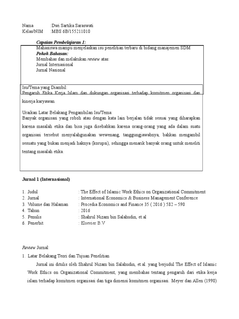 Jurnal manajemen sumber daya manusia (msdm) pengaruh disiplin kerja, komitmen, dan karakteristik individu terhadap total quality management (studi kasus pada tenaga pendidik universitas muhammadiyah semarang) faza rusyda fakultas ekonomi universitas semarang abstract: Pengaruh pengembangan sumber daya manusia terhadap produktivitas kerja karyawan pada cv sumber alam lampung selatan. Jika kinerja karyawan baik, maka perusahaan berhasil memanaj karyawan dengan baik. Kekurangan dalam jurnal tidak menyertakan cara yang dapat dilakukan untuk meningkatkan kualitas kinerja sumber daya manusia beserta contoh nyata yang mengacu pada kinerja karyawan pt asahi indonesia judul jurnal : Sumber daya manusia yang dimiliki perusahaan tersebut.