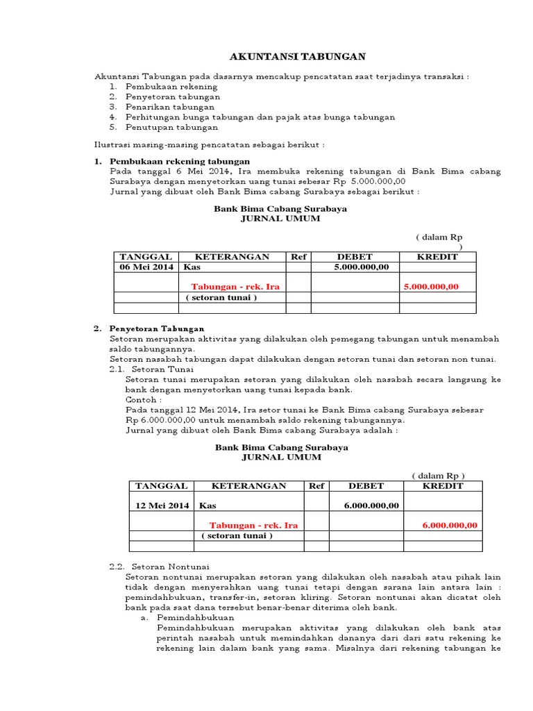 Endang pada tanggal 1 september 2006 hendak membuka tabungan di bank dki cabang jakarta. Blog manajemen keuangan akan membahas dengan rinci perlakuan akuntansi 3 jenis jasa bank umum tersebut, mulai dari pengertian, fungsi jasa bank, contoh beserta cara mencatat jurnal transaksinya. Contoh transaksi giro dan tabungan beserta jawaban (giro) 1. Standar jurnal akuntansi adalah merupakan pedoman dalam melakukan pencatatan atau pembukuan setiap transaksi keuangan. Oleh karena itu transaksi di atas dicatat dengan jurnal sebagai berikut: Pada tanggal 3 juli 2013 aditya membuka tabungan simaskot pada bank omega semarang dengan setoran berupa uang tunai rp1.500.000, wesel yang telah jatuh tempo dan telah diendos oleh bank prima cabang malang sebesar rp8.000.000. Transaksi bisnis efisien dengan layanan giro swacoid. Daftar isi artikel buka 01:
