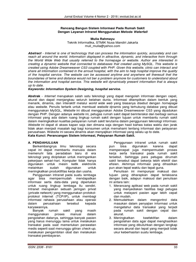 Pengembangan sistem informasi penjadwalan pelayan ibadah pada gereja mawar sharon malang menggunakan metode waterfall bella nemesias prasetiyani1, niken hendrakusma wardani2,. Adapun tahap yang dilakukan yaitu : Sistem informasi rumah sakit, waterfall. Jurnal pengembangan teknologi informasi dan ilmu komputer 10394 fakultas ilmu komputer, universitas brawijaya 1. Bathin alam, sungai alam, 28712, indonesia 2teknik informatika, stmik nusa mandiri, jakarta, jl. Informasi bagi siswa dan guru mengenai pelaporan data nilai siswa dengan memanfaatkan sistem komputerisasi yang diolah dengan menggunakan bahasa pemrograman web php serta database mysql. Pengolahan data inventori barang di pt.