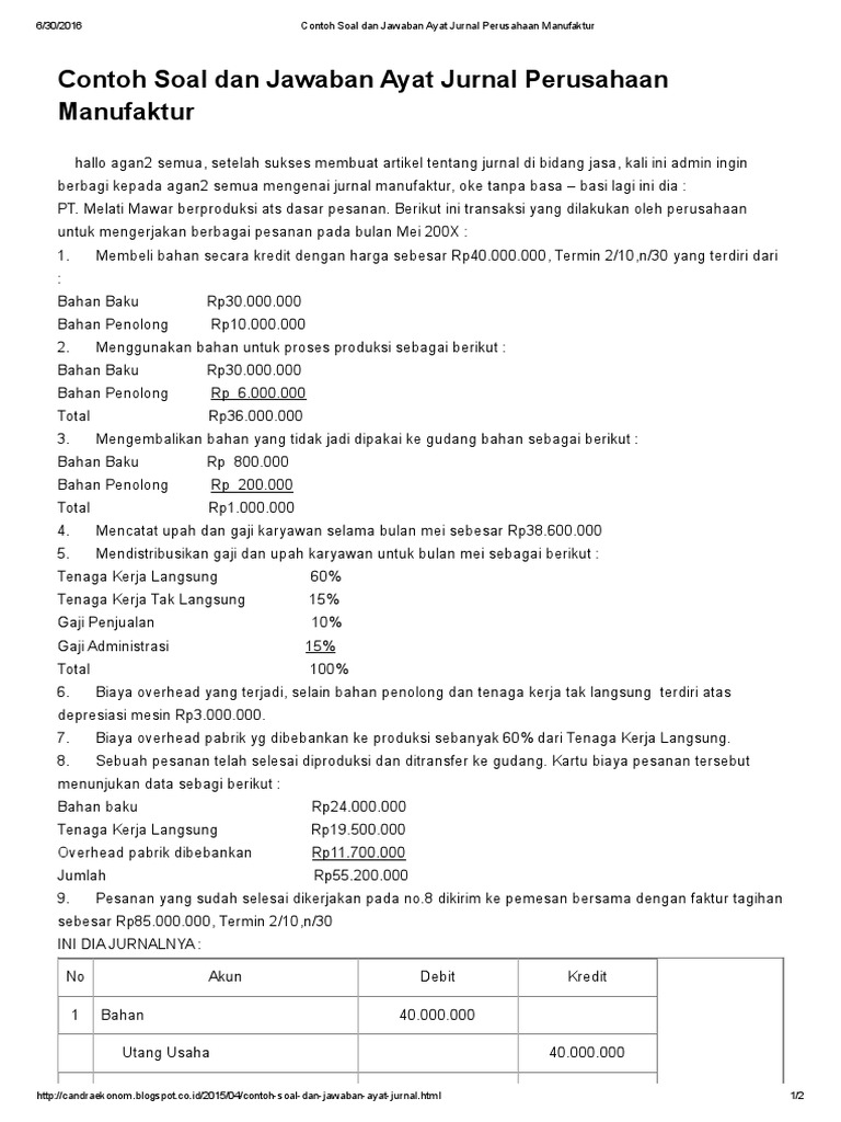 Banyak orang yang masih kesulitan dengan sisitem menjurnal dikarnakan kebingunan dalam memasukan ke akun mana suatu transaksi harus ditempatkan sebab jika salah, proses siklus akuntansi akan salah semua. Pemilik pt merah merdeka membuka rekening bank atas nama aaa dan menyetorkan uang rp50 juta sebagai modal awal usaha. Namun kali ini, kita akan masuk pada pembahasan mengenai jurnal umum pada perusahaan manufaktur. Artikel ini membahas secara lengkap jurnal umum dari pengertian tujuan manfaat bentuk fungsi cara penyusunan contoh soal dan analisisnya. Tahapan proses siklus akuntansi sendiri diawali dari pencatatan bukti transaksi keuangan yang meliputi kuitansi, akte, faktur penjualan, faktur pembelian, surat perjanjian, dll. Analisis biaya untuk botol plastik di industri manufaktur. ⌚ november 3, 2013 by m mustafa. Pt gayanaji adalah perusahaan manufaktur yang memproduksi furniture dari kayu.