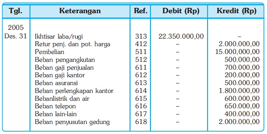 Membuat sebuah ayat jurnal penutup yang kemudian juga dipindahkan ke dalam buku besar.