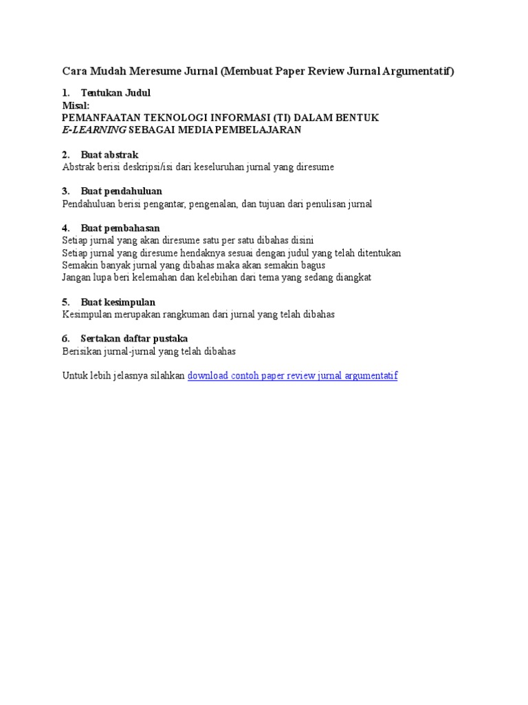 Cara mudah meresume jurnal (membuat paper review jurnal argumentatif) 1. Cara membuat paper yang tidak kalah penting adalah menuliskan bab pendahuluan. Paper ini hampir sama dengan makalah, hanya saja paper dibuat lebih ringkas dibandingkan dengan makalah. Tugas menulis paper seperti ini sudah menjadi skeseharian bagi mahasiswa. Judul adalah salah satu bagian penting dalam pembuatan paper. Ukuran kertas a4 ( lebar 21 cm, panjang 3. Penelitian terhadap hubungan pembelajaran pendekatan saintifik terhadap keterampilan proses sains dan hasil belajar fisika. Terakhir adalah hasil dan pembahasan yang diperoleh di dalam jurnal tersebut.
