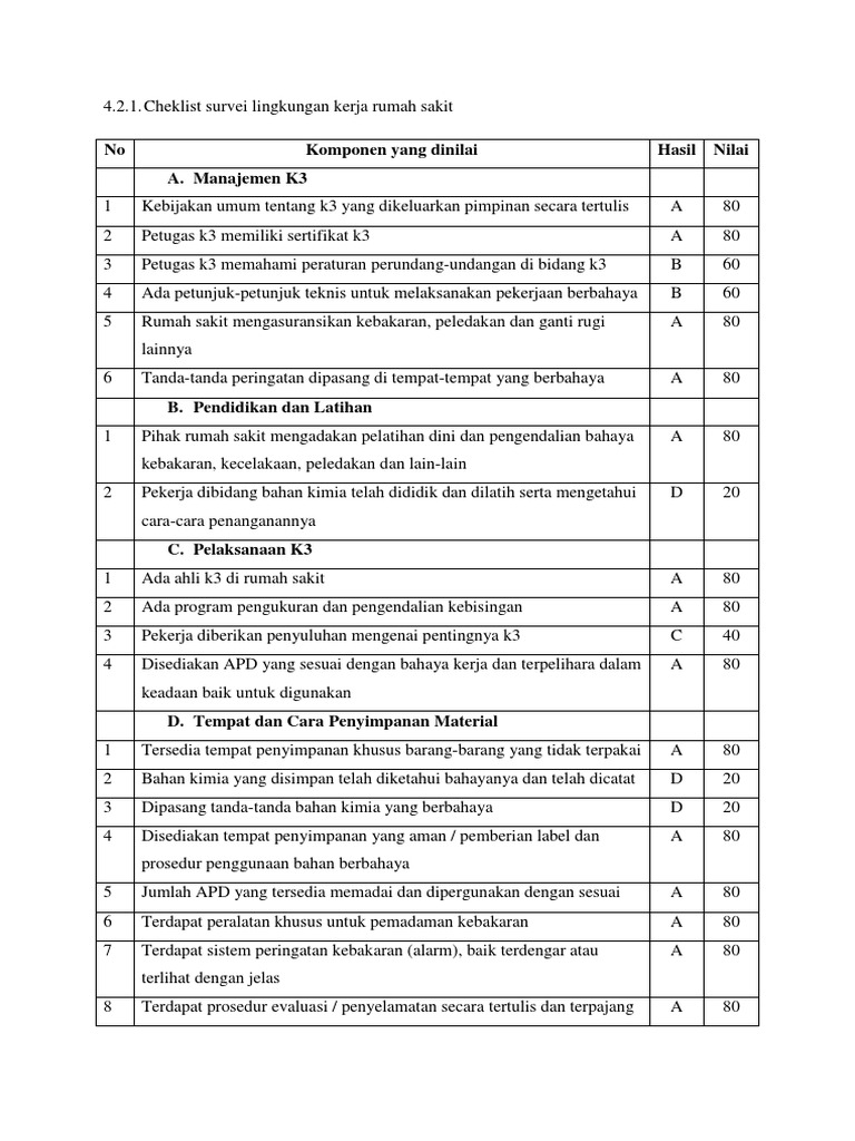Cheklist Survei Lingkungan Kerja Rumah Sakit from imgv2-2-f.scribdassets.com