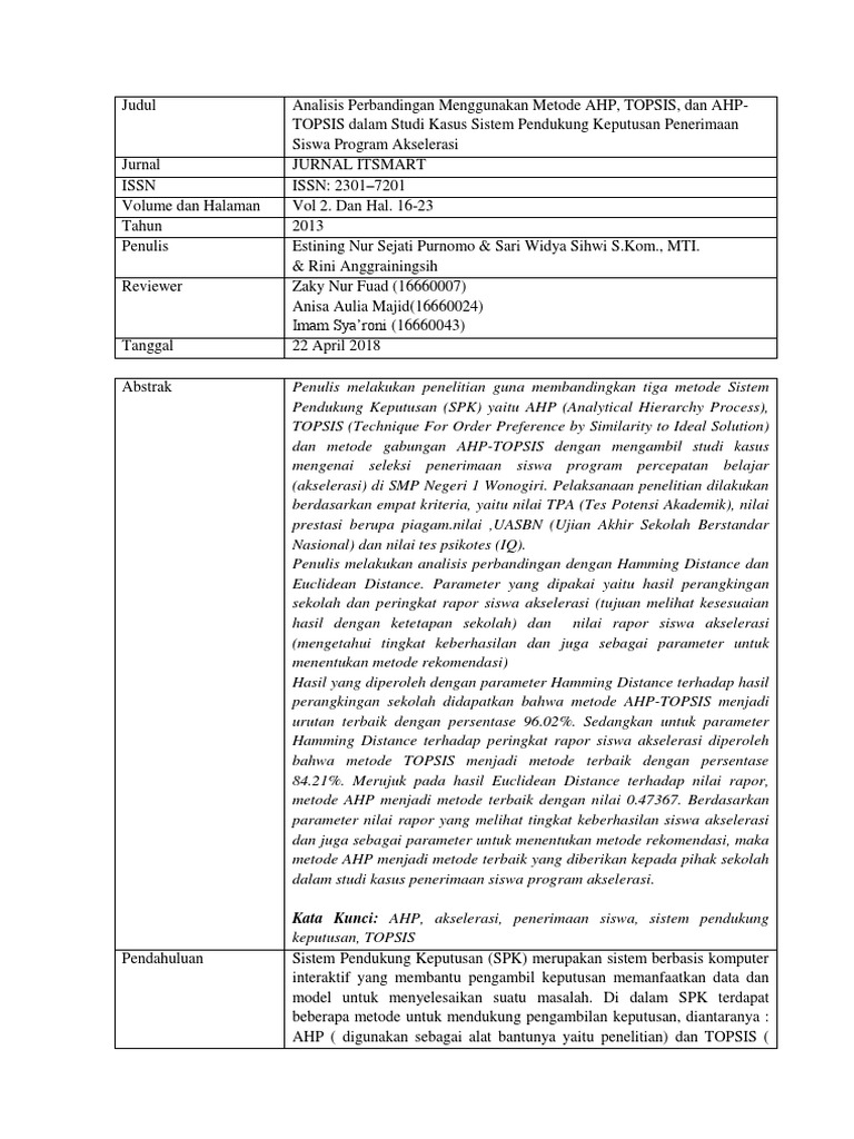 Pendahuluan jurnal biasanya menerangkan garis besar dari isi jurnal. Contoh review jurnal politik judul jurnal : Tugas makalah perbandingan 2 jurnal di kumpulkan untuk memenuhi tugas uas mata kuliah sistem pendukung keputusan oleh : Contoh hipotesis berikut akan menunjukkan bentuk keseluruhan antara hipotesis dengan penelitian. Kemampuan menyebutkan karakteristik atau sifat suatu persoalan tergolong perbandingan senilai ataupun berbalik nilai 3. Citra ayu wardhani tanggal : Contoh jurnal skripsi ( perbandingan metode springate dengan metode fuzzy ) analisis prediksi kebangkrutan dengan metode springate konvensional dan metode fuzzy springate pada perusahaan industri farmasi. Jurnal penelitian terdahulu perbandingan presatasi.