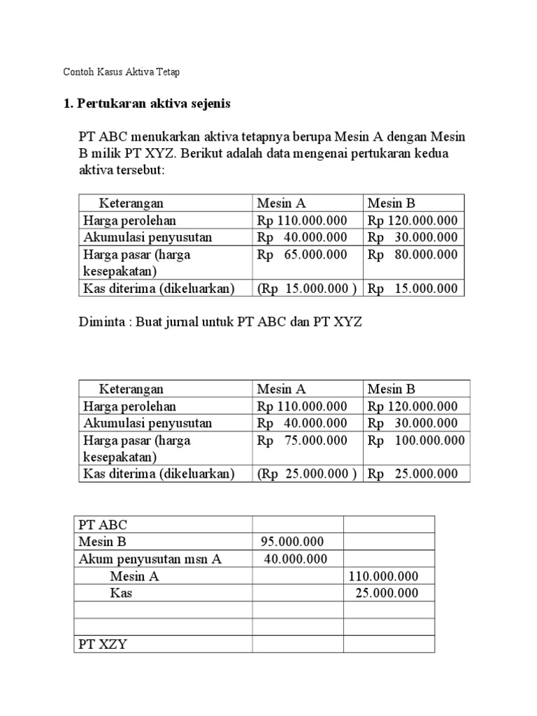 Truk tersebut diperoleh dengan mempertukarkan truk pengiriman yang lama dan kas sebesar rp 63.000.000. Contoh soal dan jawaban pelepasan aset tetap akan berkaitan dengan transaksi penjualan dan pertukaran aktiva tetap sejenis dan tidak sejenis. Contoh jurnal penghentian penggunaan aktiva tetap setelah disusutkan penuh. Kesimpulan pengertian revaluasi dan contoh soal: Semua bentuk aset tetap dikenai penyusutan kecuali tanah atau lahan, aset tetap merupakan subjek dari penyusutan, artinya nilai aset tetap selain tanah misalnya mobil, berkurang seiring denganan realisasi masa umur manfaatnya, sampai ketika masa guna itu habis.
