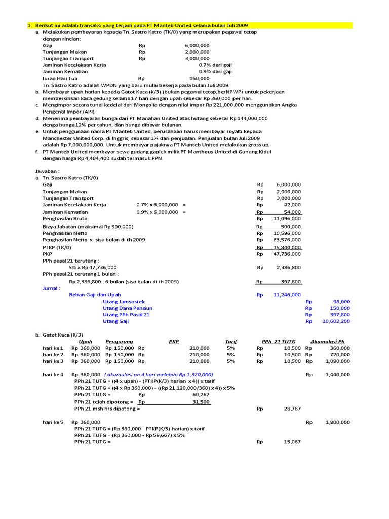 Ppn 10 x rp1 600 000 000 rp160 000 000. Kita diminta untuk membuat koreksi fiskal dari sebuah laporan laba rugi suatu perusahaan dagang. Pemotong pph pasal 23 adalah badan pemerintah,wajib pajak badan dalam negeri, penyelenggaraan kegiatan, bentuk usaha tetap (but. Pada akhir periode, jumlah perlengkapan yang masih ada adalah sebesar rp. Contoh soal pph (pajak penghasilan) soal teori pph a. Adapun kunci jawaban soal perpajakan dapat pembaca lihat pada akhir artikel. Journal published by brawijaya university. Buku ini secara langsung telah direview oleh pegawai pajak