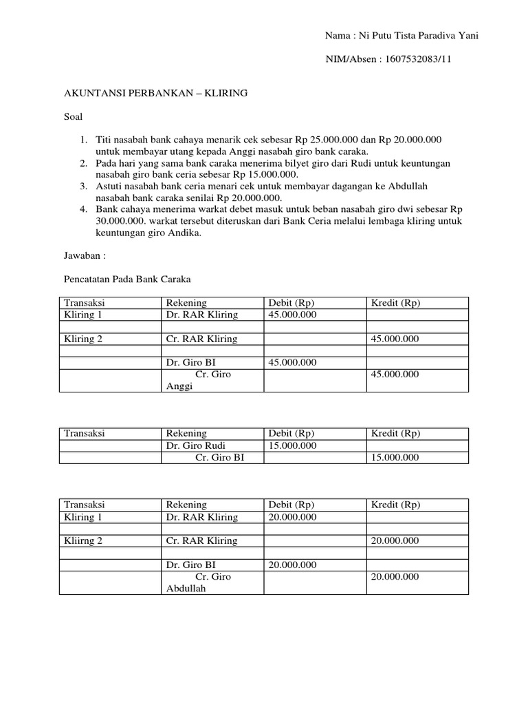 26.berda sarkan transaksi pada soal nomor 25, maka jurnal yang harus dibuat oleh pengelolan dana (b) adalah: Tentu kita semua tahu bahwa dalam mapel akuntansi tersebut terdapat beberapa kompetensi dasar yang harus dipelajari. 19910827 201801 2 002 konsultan: Nurlaila harahap, se, ma nip. Contoh soal akuntansi perbankan jurnal untuk giro tabungan deposito traveller s cheques pinjaman. Akun jaya yang terjadi pada bulan desember 2017. Laporan keuangan adalah hasil utama dari proses siklus akuntansi. Contoh soal akuntansi perbankan syariah soal jawaban pt.