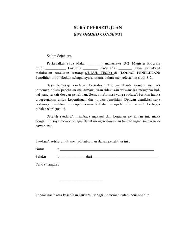 Demikian surat persetujuan ini dibuat untuk dapat dipergunakan sebagaimana mestinya.