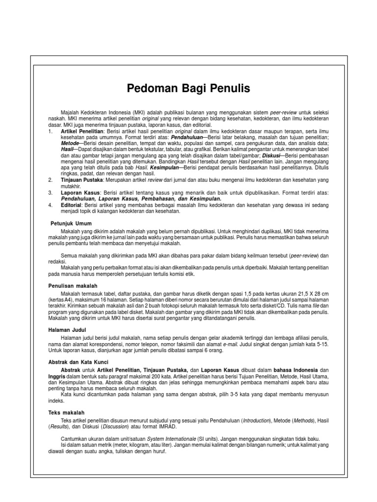 Pertanyaan klink clinical questiondalam ebm meliputi : Contoh format atau template jurnal. Telaah pustaka digunakan untuk melakukan penelitian, untuk semua bagian (laporan) penelitian. Proses mengkritisi melibatkan pemeriksaan mendalam dari setiap tahap proses penelitian. Ini bukan kritik melainkan pengawasan impersonal dari sebuah pekerjaan dengan menggunakan pendekatan yang seimbang dan obyektif, tujuannya adalah untuk menyoroti kekuatan dan.