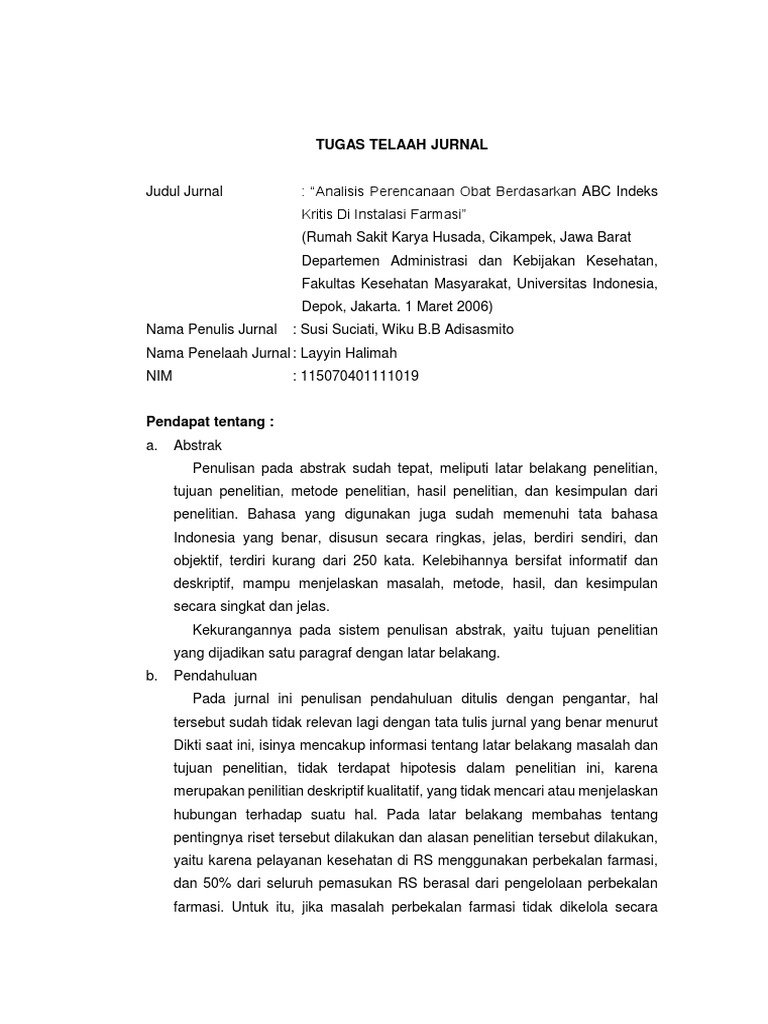 155010100111013 ilmu hukum fakultas hukum universitas brawijaya tahun 2015 tugas analisis jurnal jurnal : Penelitian terhadap hubungan pembelajaran pendekatan saintifik terhadap keterampilan proses sains dan hasil belajar fisika. Resume atau ringkasan adalah suatu cara yang ekfektif untuk menyajikan karangan yang panjang dalam sajian yang singkat. Secara umum, review sebuah jurnal akan terdiri dari. Tugas review jurnal tentang kelompok kata pengantar assalamualaikum wr.wb.