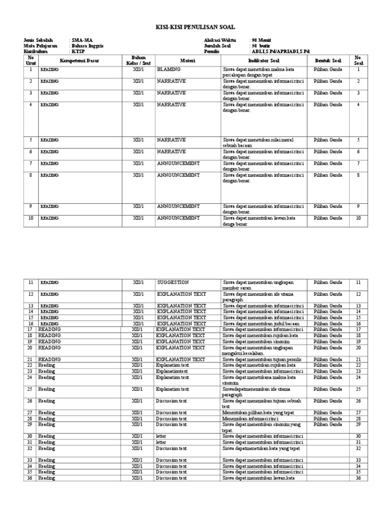 Berikut ini saya posting contoh soal dan pembahasan bahasa inggris smp/mts. Kisi kisi soal up ukm ppg 2020 lengkap semua bidang studi. Yuk langsung coba untuk mengerjakan nya? We must clean our classroom. Berikut kami lampirkan kisi=kisi soal uas bahasa inggris kelas vii, viii dan ix. Pada umumnya, passive voice bercirikan penggunaan to be + verb 3. Home › bahasa inggris › soal dan jawaban › soal usbn sma. We should go to the dentist. The pregnant visitors of the mountain. Agar lebih jelasnya, berikut adalah latihan soal bahasa inggris tentang. Kisi kisi uas bahasa indonesia lengkap kelas 12 smk beserta jawaban dwitha fajri 1 menyebutkan struktur teks cerita sejarah orientasi pengenalan definisi latar belakang s p kata kerja.