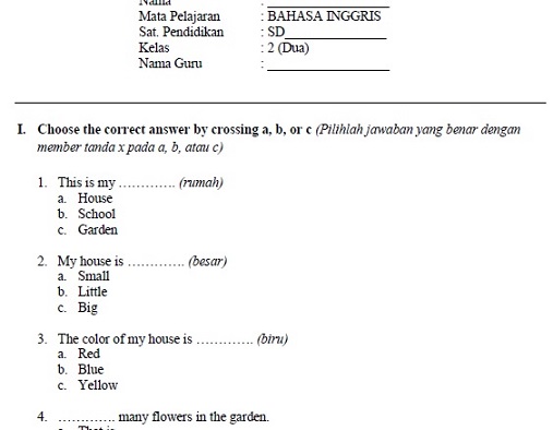Contoh Soal Pts Uts Bahasa Inggris Kelas 1 2 3 4 5 6 Sd Mi Semester 1 Kurikulum 2013 Ruang Pendidikan from 1.bp.blogspot.com