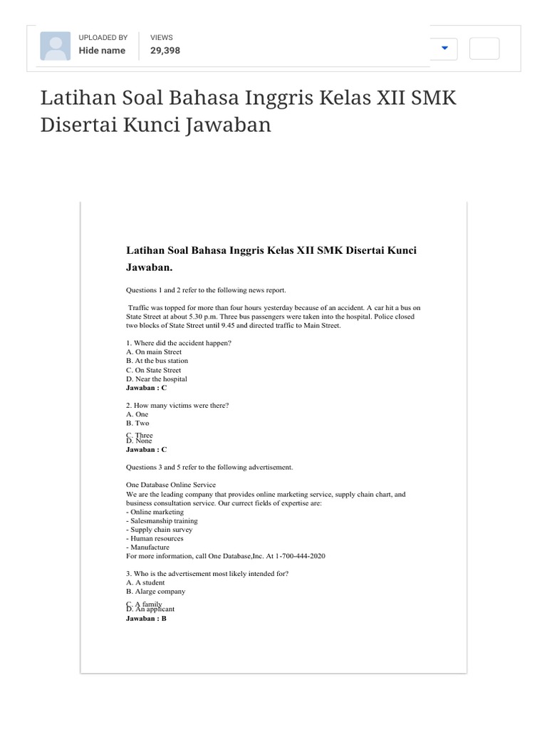 Download Soal Bahasa Inggris Kelas Xii Smk Dan Kunci Jawaban Doc