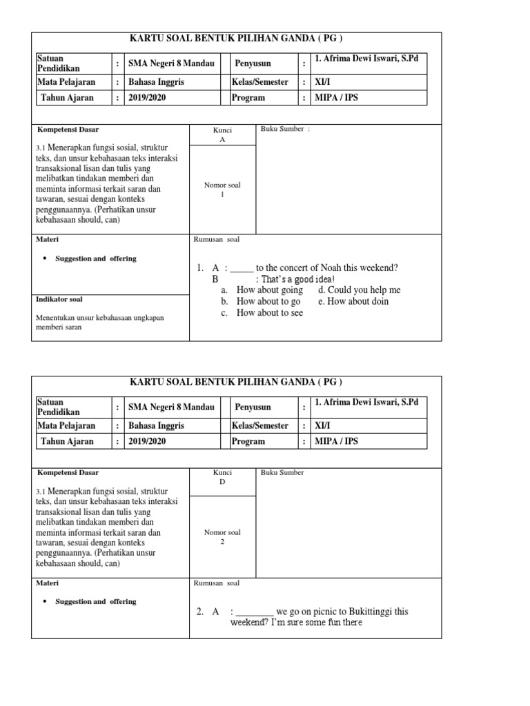 Berikut adalah contoh soal pilihan ganda dan esai bahasa indonesia dan kunci jawaban yang telah diulas secara lengkap yang bisa dijadikan referensi dalam membuat soal ujian semester ataupun lainnya. There is increasing evidence that the impacts of meteorites d. 20 soal latihan puisi atau poetry dalam bahasa inggris lengkap dan mudah untuk smp dan sma yang akan memperdalam pemahaman tentang puisi. Pts ini juga dikenal sebagai uts ujian tengah semester. Fahmi (the chair student of 8 b) 06/01/2017 please forward to your kompetensi dasar 3.1 menganalisis fungsi sosial, struktur teks, dan unsur kebahasaan pada ungkapan memberi saran. Makalah materi soal bahasa indonesia kelas 9 diterangkan mulai dari pelajaran sd, smp, atau sma min, mts, ma dan smk lengkap dengan contoh soal pilihan ganda. Dengan banyak berlatih soal, kemampuan bahasa inggris contoh paragraf induktif analogi dan pengertiannya. Dalam bahasa inggris tentu memuat ribuan atau bahkan puluhan ribu kosakata. Download soal dan pembahasan selengkapnya di sini. • • kunci jawaban : Pada kosakata (vocabulary), para siswa di tingkat ini belajar lebih jauh mengenai grammar dan inggris kelas 7 smp semester 1.