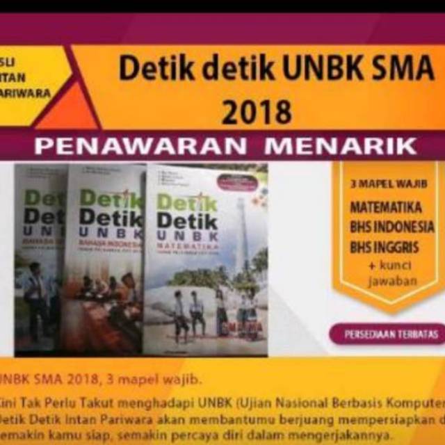 Jual best seller detik detik ujian nasional bahasa indonesia 2018 2019 jbdj kota surabaya grand mart tokopedia. Intan pariwara jumlah halaman : Kunci jawaban intan pariwara kelas 12 bahasa indonesia. Namun, sekarang tidak usah gelisah dan bingung sebab tidak sanggup mencocokkan hasil pekerjaan dengan kunci jawaban. Buku kunci jawaban soal detik detik unbk smp 2017 2018. 21 x 28 cm cover : Kunci jawaban dan pembahasan un detik detik sma geografi tahun 2020. Kunci jawaban buku detik detik kelas 6 2020 bahasa indonesia. Detik detik un bahasa inggris sma 2019 kunci jawaban kertas cd 45 gram. Soal ini sudah kakak susun sebanyak 45 soal termasuk dengan kunci jawabannya. Kunci jawaban detik detik sd 2019 matematika gratis hot sale fotokopi kunci detik matematika sma ipa 2016 2017 intan.