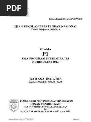 Get Kunci Jawaban Usbn Bahasa Inggris P1 2018 Sumatera Selatan