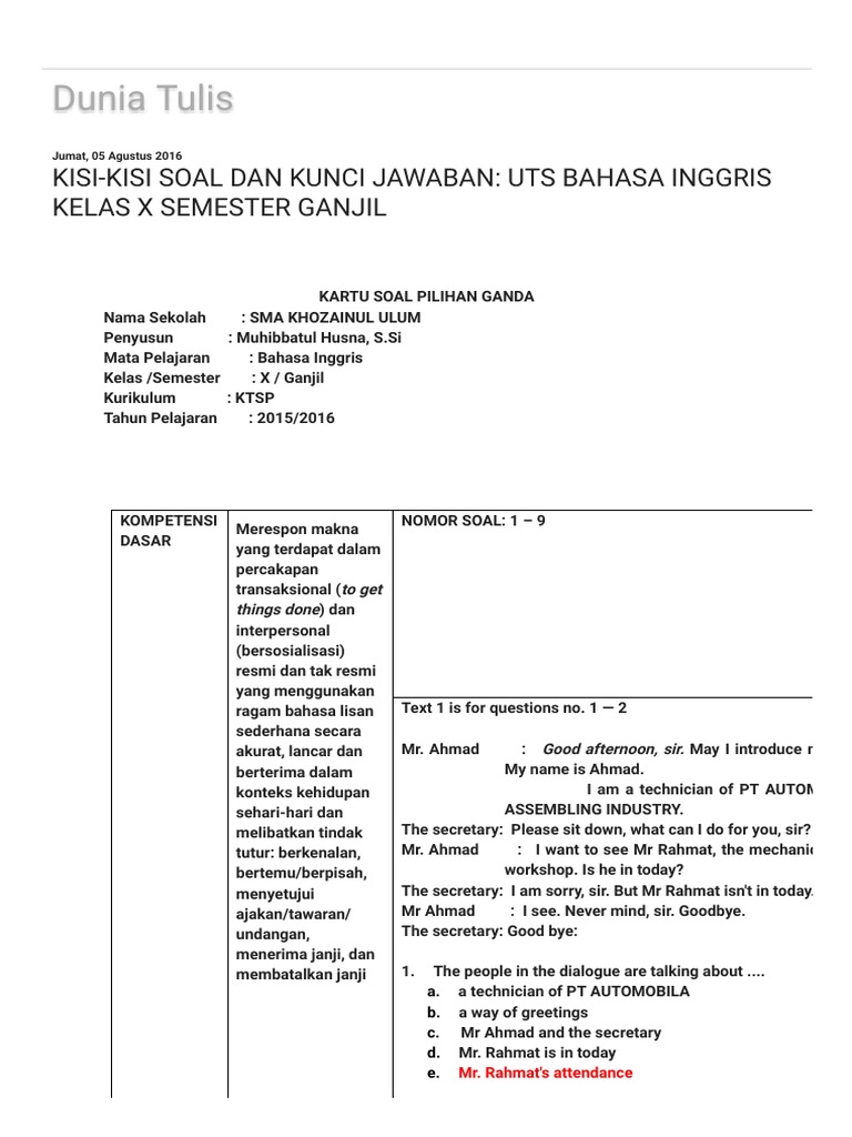 Kumpulan contoh soal bahasa inggris announcement kelas 1 sma pilihan ganda dan kunci jawabannya. Read the following text to answer questions number 10. Home › bahasa inggris › soal dan jawaban › soal usbn sma. According to the text, how should an acehnese woman respond to the death of her family member in a war? Pembahasan soal gelombang mekanik (part 3/3). Read carefully and choose the soal ukk bahasa inggris sma kelas 11 dan kunci jawaban terbaru tidak terasa akhir semester contoh descriptive text tentang hewan (animal) dalam bahasa inggris dan artinya hello everyone. Berbagai contoh soal narrative text dan kunci jawaban berikut kemudian lebih disesuaikan dengan teks bahasa inggris soal dan jawaban ini tidak la sulit dan tentu soalnya berikut bisa dijadikan kita semua tahu bahwa masalah utama kenapa soal bahasa inggris sering dianggap sulit adalah karena. Soal ulangan bahasa inggris sma kelas xi dan jawaban.docx. 80 soal bahasa inggris smk kelas xi dan kunci jawaban. What is the communicative purpose of the text? Contoh soal bahasa inggris kelas xii beserta kunci jawabann…