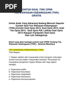 Kali ini kosngosan akan memberikan kepada mu prediksi soal dan kunci jawaban dibidang tes wawasan kebangsaan yang diperoleh dari pelaksanaan sebelumnya serta adanya penambahan dan. Soal matematika kelas 5 sd bab 2 pangkat dan akar bilangan bulat dan kunci jawaban keterangan soal. Contoh soal tes skd dan skb. Recent papers in soal tes cpns dan kunci jawaban. Contoh soal twk cpns dan jawabannya. Sangat cocok untuk belajar sebelum menghadapi ujian cpns. Juliantomo dalam postingan ini saya akan membagikan ku… Sekeleksi kompetensi dasar dalam melamar cpns selalu menjadi hal yang sangat menegangkan. Nah untuk lebih lengkapnya sobat bisa simak ulasannya dibawah ini. Tahap mengerjakan soal tes tiu termasuk dalam proses seleksi kompetensi dasar skd latihan mengerjakan soal tes cpns tiu sangatlah penting untuk mencoba kemampuan pribadi. Anda bisa mendownloadnya satu persatu secara gratis, file dalam format pdf.