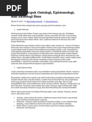 Ontologi, epistemologi dan aksiologi serta segala permasalahannya sebagai unsur yang sangat penting dalam filsafat ilmu yang dipandang sebagai satu kesatuan yang tidak terpisahkan antara satu dengan yang lainnya. Aspek ontologi, epistemologi, dan aksiologi keilmuan studi pemerintahan merupakan serangkaian landasan bagi bangunan struktural keilmuannya yang saling terkait dan tidak terpilah satu sama lainnya. Upaya peningkatan profesionalisme dan motivasi guru gugus sekolah inti iii kecamatan long ikis melalui pertemuan. Ontologi epistemologi dan aksiologi ilmu pendidikan islam tedi priatna pendahuluan pendidikan islam manakala menghadapi tekanan modernisasi sebagai tuntutan zaman yang tak terelakkan di satu pihak, dan tuntutan etik serta moralitas islam pada pihak lainnya, dalam perkembangannya akan terus Adanya suatu teori bahwa alam semesta beserta isinya adalah suatu penjelmaan pikiran.