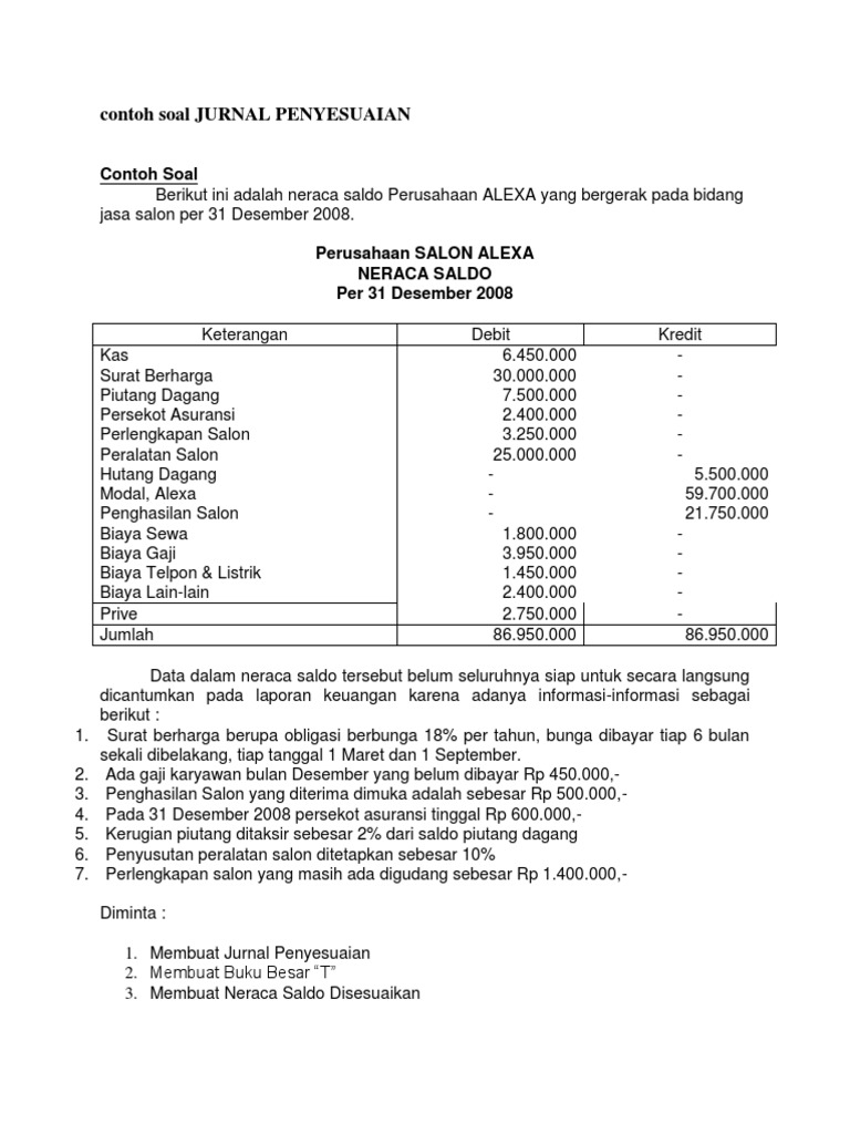 Nah, untuk memberimu pemahaman lebih jelas, selanjutnya perhatikan contoh penyusunan jurnal penyesuaian berikut ini. Inventaris disusutkan 15% per tahun. Contoh soal jurnal penyesuaian perusahaan jasa beban di bayar di muka. Anda akan lebih memahami dengan baik mengenai jurnal penyesuaian apabila anda melihatnya langsung melalui contoh pengaplikasiannya pada bisnis. Ada 8 akun yang masuk dalam jurnal penyesuaian: Contoh pembuatan jurnal penyesuaian untuk akun ini adalah sebagai berikut: Dalam jurnal penyesuaian perusahaan dagang lebih ditekankan pada pencatatan barang baik di barang masuk dan keluar perusahaan atau yang mereka dijual ke konsumen. Persediaan barang dagangan dan pembelian pt mycom computer retail adalah sebagai berikut. Jurnal penyesuaian biasanya digunakan oleh perusahaan dagang, jasa, manufaktur dan entitas lainnya, termasuk yayasan, sekolah, ngo/lsm, dan lembaga pengelola zakat. Jurnal penyesuaian adalah jurnal yang berisi proses penyelarasan mengenai catatan atau fakta transaksi pada akhir periode transaksi. Contoh jurnal penyesuaian perusahaan dagang. Ayat jurnal penyesuaian juga dapat digunakan untuk mencatat transaksi yang sudah dicatat namun memerlukan koreksi agar nilainya sesuai dengan keadaan yang sebenarnya di akhir periode. Jurnal penyesuaian persediaan barang dagang.