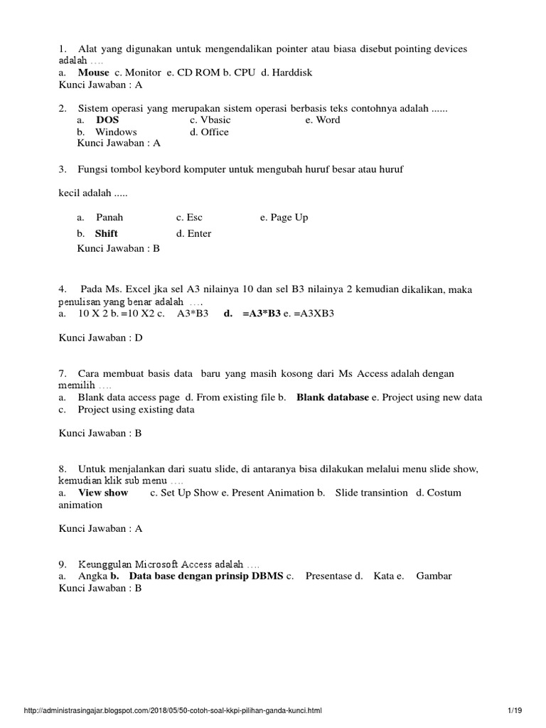 View Contoh Soal Pilihan Ganda Dan Kunci Jawaban Cpns