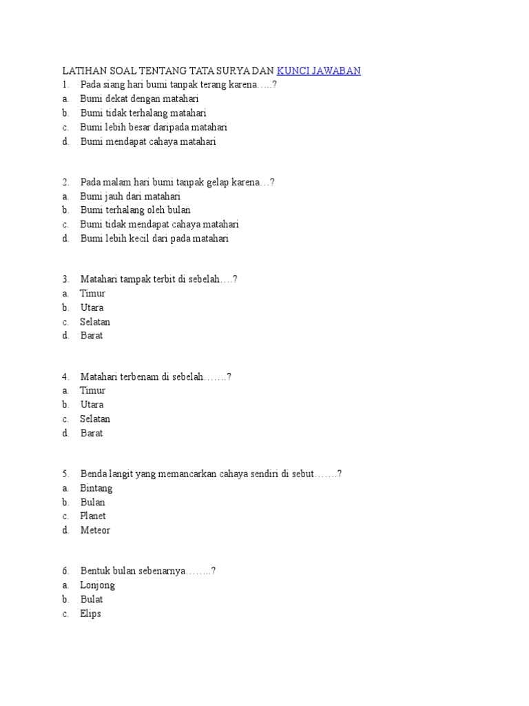 Link kunci jawaban biologi link uk semawur.com/anneokq link ph semawur.com/c3j ☑️donasi Ujian sekolah berstandar nasional (usbn) merupakan evaluasi tahap akhir yang harus di ikuti oleh para peserta didik kelas ix (sembilan) sebelelum pelaksanaan ujian nasional (un) atau unbk. Daftar kunci jawaban bully lengkap. Jawaban (b) dan (c) tidak tepat karena teks tersebut bukan menjelaskan national park secara terperinci. Inilah semua kunci jawaban terlengkap game android tts pintar dari level 201 sampai dengan level 250! Total ada 10 mata pelajaran yang bisa kalian temukan di game ini dan sebagian soal. My best friend is b. Berikut adalah pembahasan soal chasis dan pemindah tenaga teknik sepeda motor. Kunci jawaban akan membantu setiap persoalan kesulitan dalam menghadapi berbagai soal kelompok, regu: Lượt xem 1,8 n2029 năm trước. Orang yang jadi pilihan allah untuk menerima wahyu dalam ajaran islam :