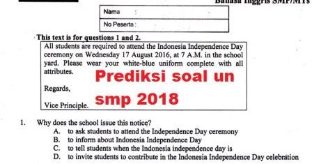 Aunt amelia told me about it. Dan yang pertma aku tulis disini adalah kunci jawaban bahasa inggris untuk kelas 12 smk. Ujian seleksi pretest ppg dalam jabatan tahun 2018 akan dilaksanakan mulai tanggal 3 (tiga) mei tahun 2018. Sistem kami menemukan 25 jawaban utk pertanyaan tts menyerap bahasa inggris. 2018) have their own businesses and be independent. Fungsi bahasa indonesia sebagai bahasa negara adalah. Quiz top of formquestion 1 (1 point) based on the text, why does anna apply for the job? Demikianlah artikel tentang soal dan kunci jawaban pretest ppg 2018. Dibawah ini yaitu referensi soal puisi bahasa inggris yang akan memperdalam pemahaman kalian perihal puisi bahasa ingggris. Contoh soal cpns 2018 tes skb cpns guru pendidikan agama. Pada artikel kali ini kami bertujuan untuk menjadi sarana belajar bagi para siswa yang duduk di bangku sekolah menengah kejuruan (smk).