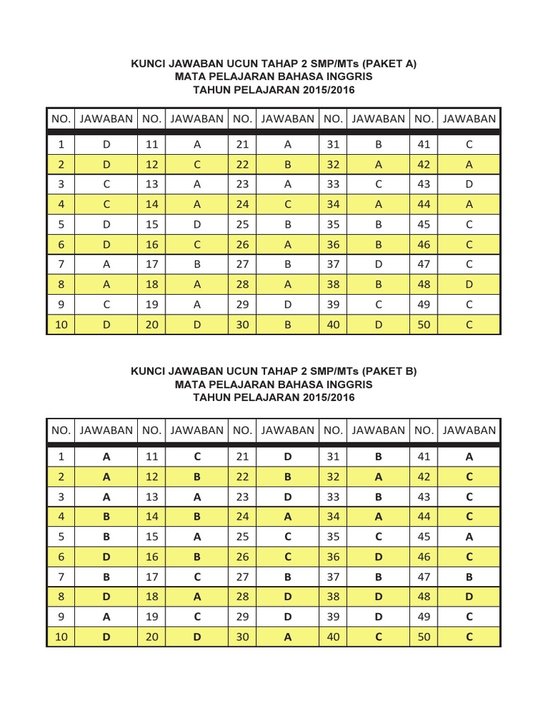 Prediksi soal un 2015/2016 bagian 1 lengkap dengan kunci jawaban prediksi soal un prediksi soal un smp 2016 bahasa inggris paket a | download. Dan jangan lupa untuk mempelajari rangkuman materi. Soal usbn bahasa inggris kurikulum 2013. Ujicoba ujian nasional (ucun) ii lvi i / mirlm tahun pelajaran 2016/2017 lembar soal tulis nomor anda pada lembar jawaban komputer (uk)! Atau bisa download file format.pdf nya disini sumbe. Ucun smp 2018 tahap 1siap dilaksanakan di dki jakarta, ucun disiapkan oleh mgmp dki jakarta dengan tujuan untuk uji coba atau latihan mengerjakan soal un 2018, ucun 2018 smp terdiri dari 4 mata pelajaran yaitu bahasa indonesia, matematika, bahasa inggris, dan ipa. C jawaban yang paling benar adalah c, jika tidak menyetujui memberikan sesuatu maka ungkapan yang paling sesuai yaitu i'm sorry we don't have it. Paket b ( download ). Demikian ulasan tentang kunci jawaban usbn bahasa inggris smp/mts kurikulum 2006 t.p. Kegiatan usbn (ujian sekolah berstandar nasional) tingkat smp atau mts tiap daerah ternyata bagi bapak dan ibu guru yang mengajar mata pelajaran tersebut, tentu sangat membutuhkan soal dan kunci jawaban mata pelajaran yang diampu tersebut. Paket a ( download ) 2.