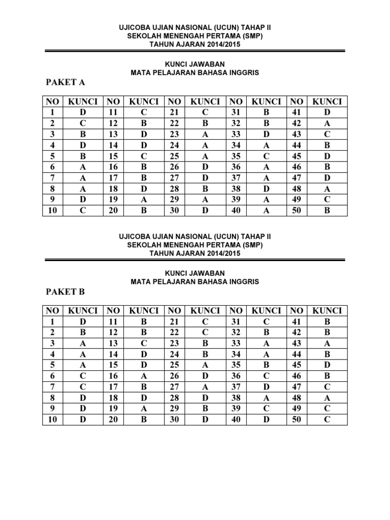 View Kunci Jawaban Ucun Paketa Bahasa Inggris
